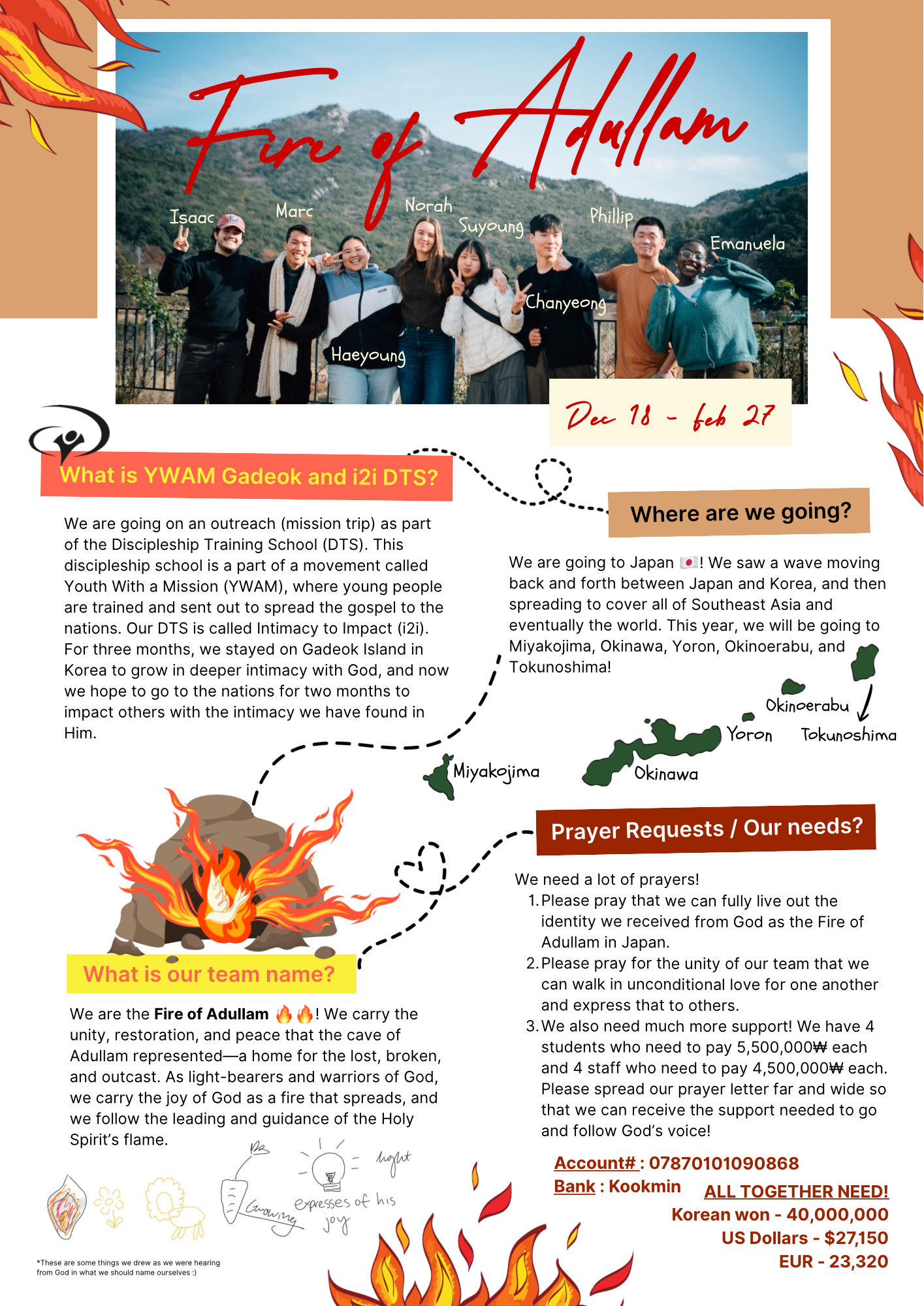 Please pray that we can fully live out the identity we received from God as the Fire of Adullam in Japan.